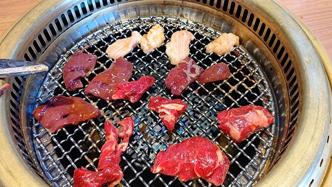 投稿日: 2024年5月12日2024年5月6日グリグリの日(2-2)・・・🥩 そして本格的に勝負が始まる・・・🥩 只管焼く・・・ただそれだけの単純作業・・・🥩 そこには特別な技術は必要ない・・・火傷しない事だけである・・・🥩 そしてまた注文・・・今の僕の食欲の無さに胃袋がビックリするのでは・・・ 友達が気を利かせてハサミで小さくしている・・・甘えの心が!・・・友達に「余計な事するな~」っと説教をして(本当か?)次の肉に取り掛かる・・・🥩その前に・・・ジュースで・・・ 只管焼いて胃袋イン・・・ そして網交換で新たな気持ちへと入れ替える・・・ そして只管焼いて焼いて焼きまくる・・・ その間・・・ビビンバで王者の風格を見せつける・・・🍚 そしてジュースをまた頼む・・・ 焼きまくりで直ぐに網がダメに・・・壮絶な勝負(‘ω’)ノを物がったている・・・(‘ω’)ノ やはり焼肉・・・タレなので塩分が・・・やけに喉が渇く・・・🍹 そしてまた焼きまくる・・・野菜に変わっている・・・ 意外とキャベツが美味い・・・肉とのコラボえと・・・素晴らしい・・・ グリグリ名物・・・緑爪楊枝・・・ そして勝負は終わり・・・時間いっぱいまで健闘・・・今回も心が折れなかった自分に乾杯・・・ そして最後は男らしくチョコレートアイス・・・流石なチョイスである・・・( `ー´)ノ 男は黙ってチョコアイス・・・🍨 時間が・・・ 次・・・来るのはお盆休みか・・・「またヨロピク(‘◇’)ゞ」 そして体重と体脂肪の結果は・・・これだけ食べたので結果が怖い・・・因みに当日の体重と体脂肪は。。。 57kgをオーバーしないように・・・食べてから腕立、スクワット、腹筋等々して・・・筋肉と体重維持に・・・結果がこの数値・・・面白い(*^^)v 次は8月か~キチンと毎日管理して健康に留意・・・ガンバ( `ー´)ノGW過ぎからまた添加物入らない食事方法と小食=少食へと・・・🍚