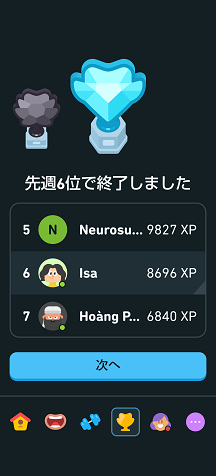 投稿日: 2024年10月21日2024年10月20日 投稿者: LAA0021851duolingo・・・難しくなってきてる・・・(‘◇’)ゞ 急に問題が難しくなってきてるのと時間が圧倒的にたりない・・・もっと効率の良い時間の使い方を考えなきゃ。・・・⌚ 因みに6位が僕である・・・( ゚Д゚) 参加しないと名無しのごん部さんか?