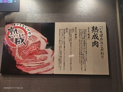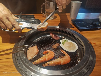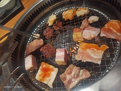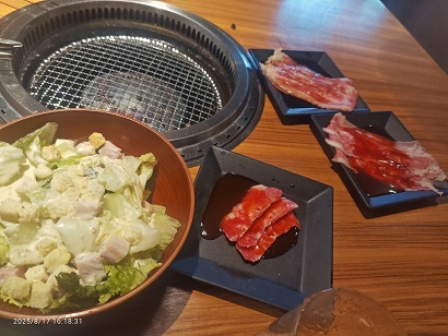 投稿日: 2025年8月24日2025年8月18日恒例の焼肉会1-2・・・🐷🐮🐤 最近はここ・・・🍚 まだまだ暑い・・・焼肉もアツい・・・(‘◇’)ゞ この階段を上がっていくと・・・パラダイスが・・・( `ー´)ノ この扉を開けると本格的にパラダイスが・・・( `ー´)ノ またまた扉が!いつになったらパラダイスが・・・( ゚Д゚) まだ時間的に3時のおやつ完食まったり時間ってとこかな? だから夕食には早すぎるのでガラガラ・・・!(^^)! 落ち着くな~(*’▽’) そして小学校からの友達・・・ストラトである・・・ブログの中でストラトさんって呼ぼう・・・🎸全部のおぜん立てはストラトさんが・・・「ありがとうございます。(*’▽’)」 そしてパラダイス・シートへと・・・(*’▽’) 番号は5番・・・ フリードリンクの場所も近い・・・楽である(*’ω’*) そしてお肉を狂ったように注文・・・🐷🐮🐤恒例の焼肉会2-2・・・🐷🐮🐤へと
