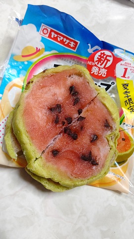 投稿日: 2024年8月12日2024年8月4日スイカでパン。。。 美味しいのか・・・思わず購入してしまった・・・🍉 中味は・・・ 裏が🍉スイカっぽい・・・一口食べてみると・・・甘い菓子パンであるな~以上 色々なアイデアで購買意識を高める・・・🍉