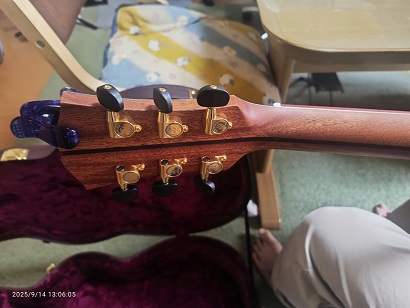 投稿日: 2025年10月4日2025年10月1日生徒さんのギター・シリーズ🎸 今回はフジゲン。。。このタイプは初・・・楽しみである・・・🎸 カタカナでチロルとも読める・・・凄いぞ~(*’▽’) 中古で約10万円で購入のこと・・・状態もよい・・・ 奇麗である・・・ 弦ビビりもなく、ピッチ感(チューニング)もよい・・・この価額帯以上に素晴らしい・・・🎸