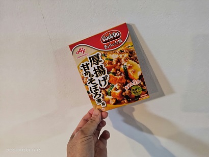 投稿日: 2025年11月7日2025年10月30日新たな・・・(*^^)v また野菜を切ってフライパンへ・・・ここまでがいつもの工程・・・🍚 今回はこれだ~🍚初かなこれは・・・(‘◇’)ゞ 多分・・・忘れてるだけかな~? で・・・完成・・・見た目はいつもの料理・・・( 一一) で・・・一口・・・多分?これは食べてないかも・・・記憶も定かでないが・・・多分?でも・・・美味しい🍚「これでいいのだ!」